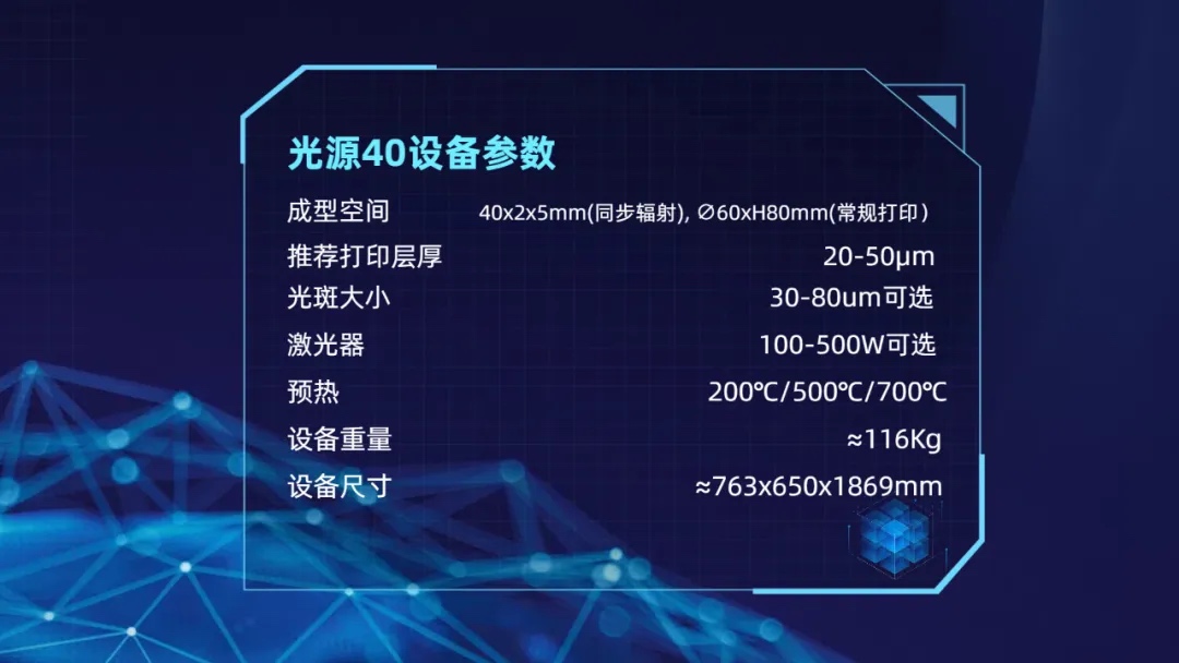 针对以上高速同步辐射X射线成像增材制造相关研究的特殊需求,云耀深维整合跨学科技术优势,成功开发出第二代同步辐射兼容型金属增材制造原位观测设备(型号:PHOTON-40),该设备主要优势: