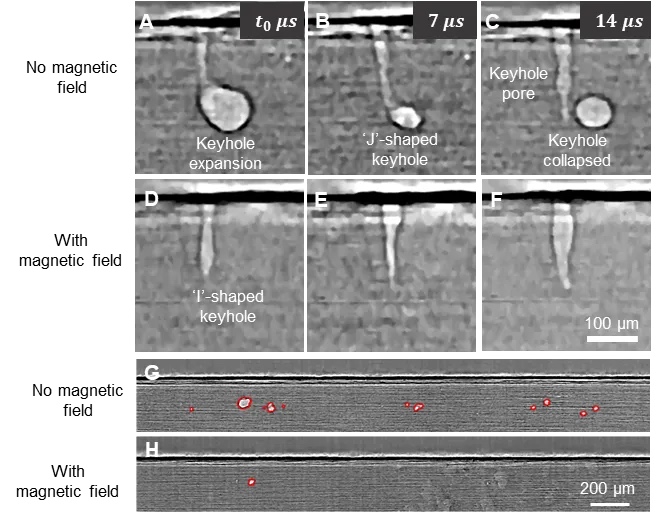 在增材制造技术研究中,匙孔效应的形成机理与演化规律一直是制约工艺优化和质量控制的关键科学问题。2025年2月英美加中四个国家科研单位使用高速同步辐射X射线成像技术合作完成的“激光焊接与增材制造过程中匙孔不稳定性的磁调控”的文章发表在Science杂志上,由伦敦大学机械工程学院材料、结构与制造研究组(MSMaH)主导。伦敦大学学院(UCL)和哈韦尔研究中心(Research Complex at Harwell)的Xianqiang Fan(范贤强)博士为第一作者。该研究发现:实验观察到特定磁场下匙孔稳定性极大提高,孔洞面积减少80%;提出新方法定量化匙孔震荡并给出了深入的机理解释;通过无量纲分析给出了加工参数选取以及材料设计方面的指导。