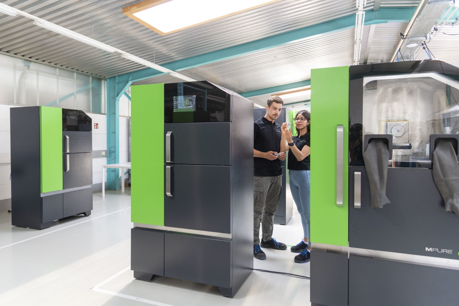 One Click Metal 的BOLDSERIES 旨在成为可访问金属 3D 打印的完整解决方案,以主要产品 MPRINT、MPURE 和专有粉末盒系统为中心。MPRINT 系统采用 200W 光纤激光器,焦点直径为 70µm,构建体积为 150mm x 150mm x 150mm。MPUREPro 装置用作组合式拆包和筛分站,使用户能够安全地移除和回收粉末,而无需直接接触。
