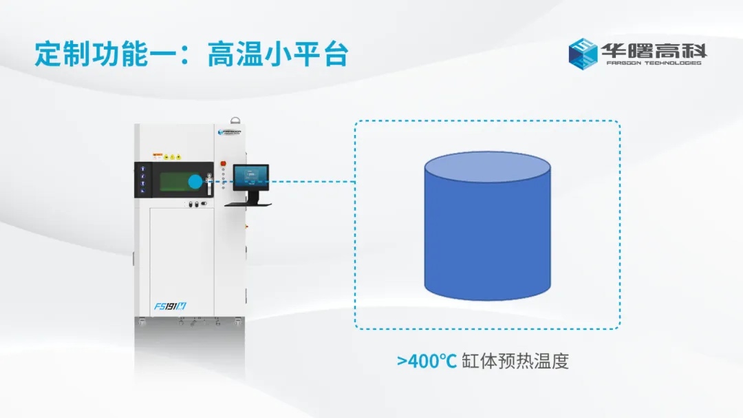 FS191M设备可定制尺寸为φ78mm×80mm的高温小平台,缸体预热温度可超400℃,极大拓宽科研工作者的材料研发窗口,助力探索材料在不同温度下的性能和行为,评估和测试材料的耐高温性能。