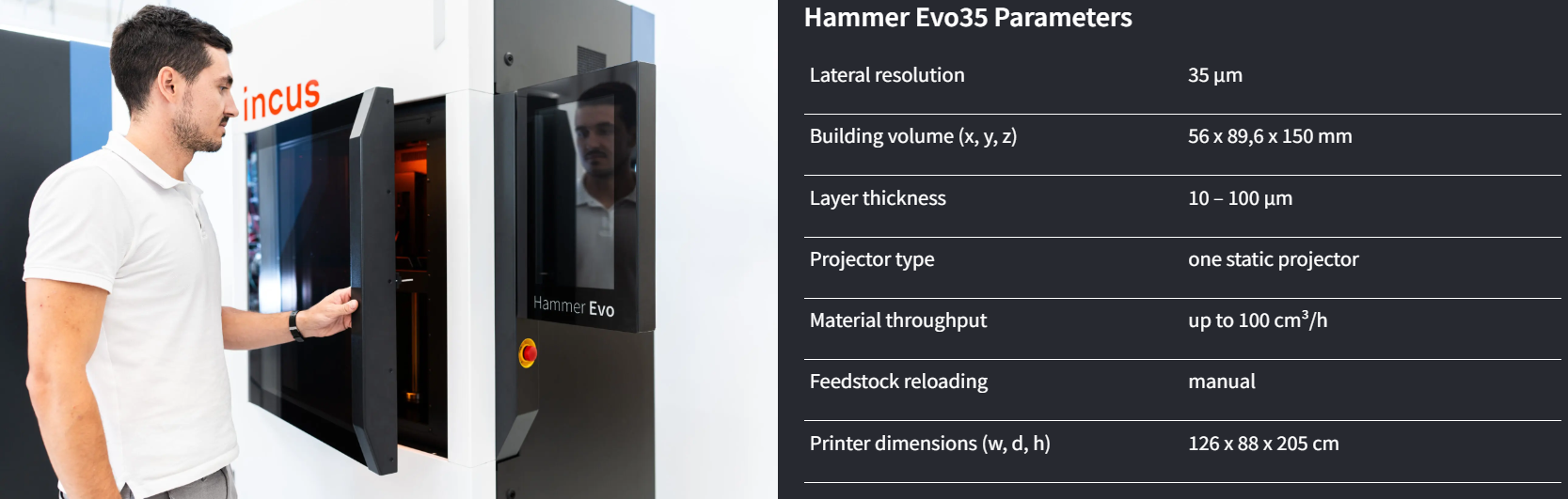2025年3月,Plansee从奥地利公司Incus引进了Hammer Evo35设备,进一步加强了其在工业级金属3D打印领域的能力。这款新一代基于立体光刻技术的粘结金属3D打印机,不仅继承了前代产品Hammer Lab35的优点,还带来了显著的技术进步。