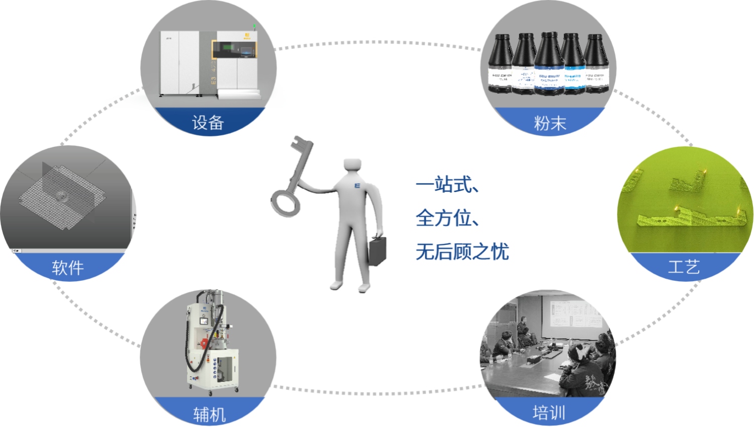 在全面真实地调研了解用户的需求、痛点和投资预期后,毅速的专业团队为用户做整体解决方案的可行性分析,包括配置模具3D打印专用设备、专用材料、专用工艺、配套辅机,再到场地规划,人员培训,最后提供长期运维服务。