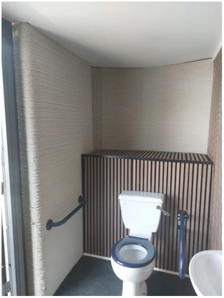 ChangeMaker 3D 为英国火车站打印了厕所隔间。这些隔间由三个模块化墙壁元素组成,打印时间不到五小时。厕所舱项目由 ChangeMaker 3D 委托,由 Clean Futures Fund 资助,利用 3D 混凝土打印技术以更快、更便宜、更可持续的方式建造卫生间。厕所舱由三个模块化墙壁元素组成,打印时间不到五小时,碳排放量比钢铁替代品减少 60%。设计包括自然融合和太阳能电池板——由 ChangeMaker 3D、Baily Garner LLP 和 CyBe Construction 共同创建。CyBe在 3DCP 技术方面拥有十多年的经验,他们在荷兰打印墙壁,然后将其运往英国进行演示。