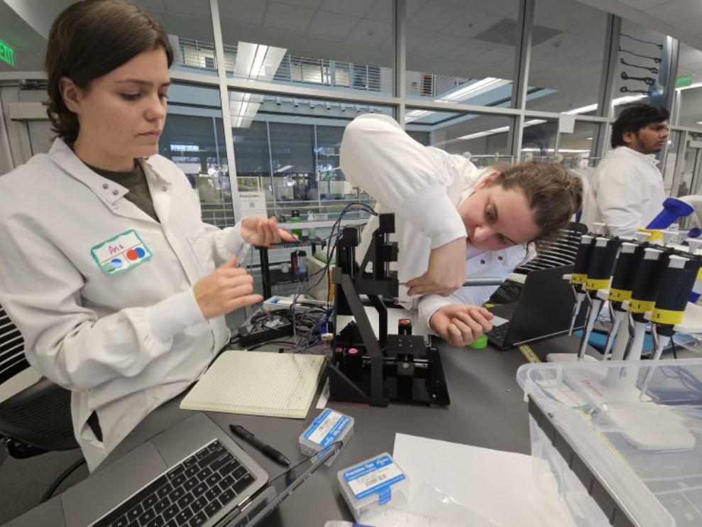 课程进入项目阶段,学生们分成五组,每组由两到三名成员组成。他们开展的项目范围广泛,从开发用于自动喷嘴对准的电子传感器到设计和制造低成本的 3D 打印螺旋分配器。值得注意的是,一些团队涉足前沿研究,例如 3D 打印人类心脏细胞以构建带瓣膜的生物泵,展示了 BIOE 261:3D 生物打印实验室所培育的创新潜力。