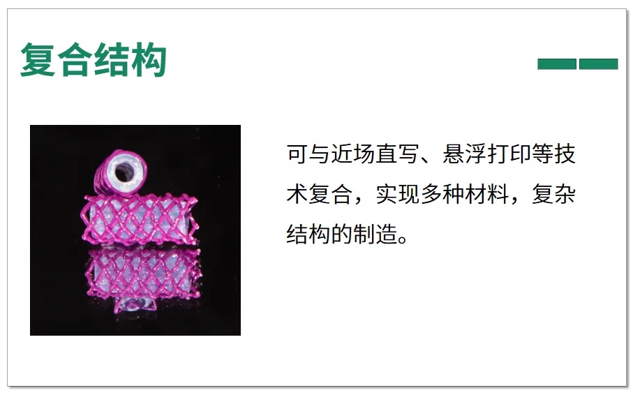 EFL团队基于自身沉淀多年的光固化技术工艺成果,并结合体积光固化生物3D打印技术,现推出全新的体积光固化生物3D打印机(EFL-BP9601),EFL-BP9601具备超快的打印速度,可满足水凝胶模型的快速成形,使细胞与生物组分保持活性。墨水自支撑的特性也可以满足悬空结构的快速成形,并且具备不错的打印精度。可以很好地适配载细胞打印、水凝胶精细结构快速构建等应用场景。