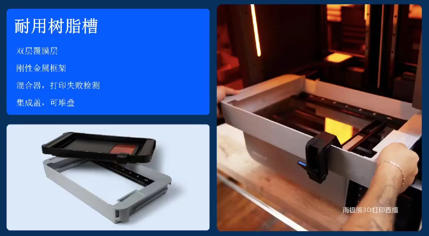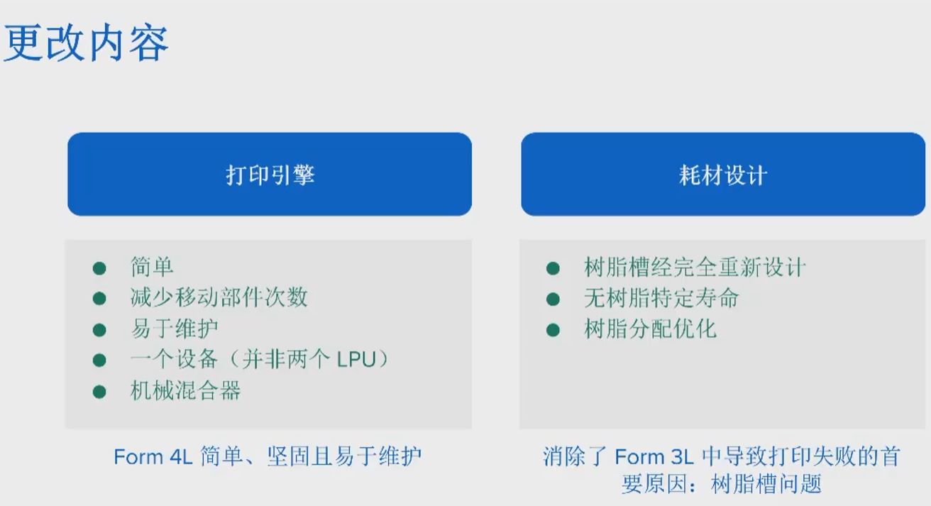 ●树脂槽问题是Form 3 L出现故障的主要原因,Formlabs在可靠性方面的大部分改进都来自于树脂槽设计的迭代。Formlabs完全重新设计了Form 4L的树脂槽,日的是在整个材料产品系列中实现极其可靠一致的结果,消除了树脂槽起皱和树脂特定使用寿命,从而超越了Form L并达到最高水平。