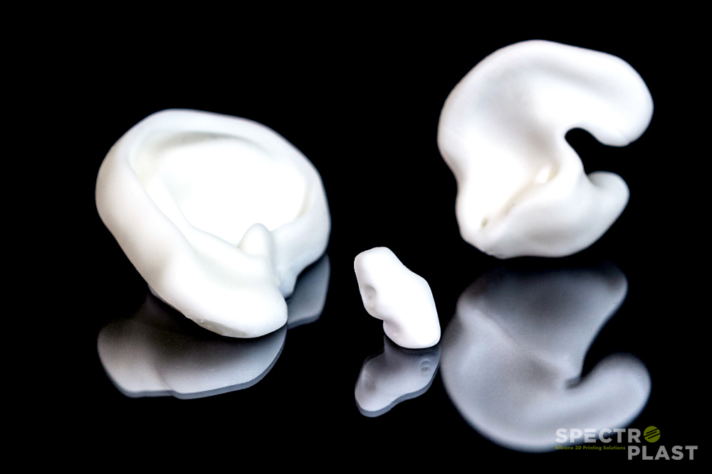 △硅胶3D 打印助听器/耳朵模型。照片来自 Spectroplast