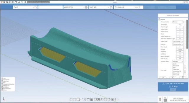 挤出机和构建体积的设计完全满足工业应用的需求,能够高效应对大规模制造任务。此外,创新的挤出机倾斜机制为用户提供了灵活性,允许在垂直和倾斜的3D打印策略之间切换,为复杂和定制设计打开了新的可能性。A3的先进打印功能进一步提升了它的吸引力。构建尺寸范围为:X轴方向2500至9800毫米、Y轴方向2500毫米、Z轴方向1300毫米。挤出机最高温度可达450°C,喷嘴尺寸介于10至15毫米之间。此外,新设备还配备了先进的软件和用户界面系统。专有的切片软件ICARUS提供直观、面向产品的切片选项,优化了3D打印工作流程。同时,专用的人机界面(HMI)能够实时监控和管理打印过程,确保用户能够完全控制整个打印过程,从开始到结束。