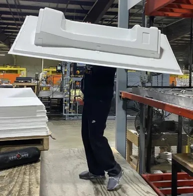与以往采用传统数控加工技术制造陶瓷或金属模具不同,Duo Form 当前使用聚合物颗粒在 Titan 3D 打印机上打印热成型模具。大幅面颗粒挤出增材制造采用的是注塑成型等其他挤出制造工艺中常见的热塑塑料颗粒,其经济效益很高,成本比传统的 FDM 细丝低近 10 倍。Titan 也支持高吞吐量打印,打印速度比传统细丝高 10 倍以上。3D Systems 和 Duo Form 共同发掘了一种玻璃填充的聚碳酸脂颗粒,不仅经济实惠、容易获得,还能经得住热成型工艺的考验,是一种耐久性好、尺寸精确的材料,也是打印热成型模具的理想材料。