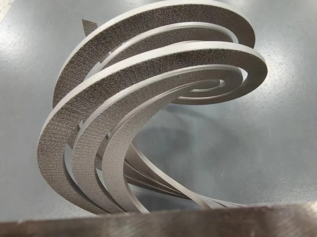 该无支撑螺旋件分别实现了15°、21°、28°的悬空无支撑打印,零件导热良好,下表面光滑,无明显夹渣形变。