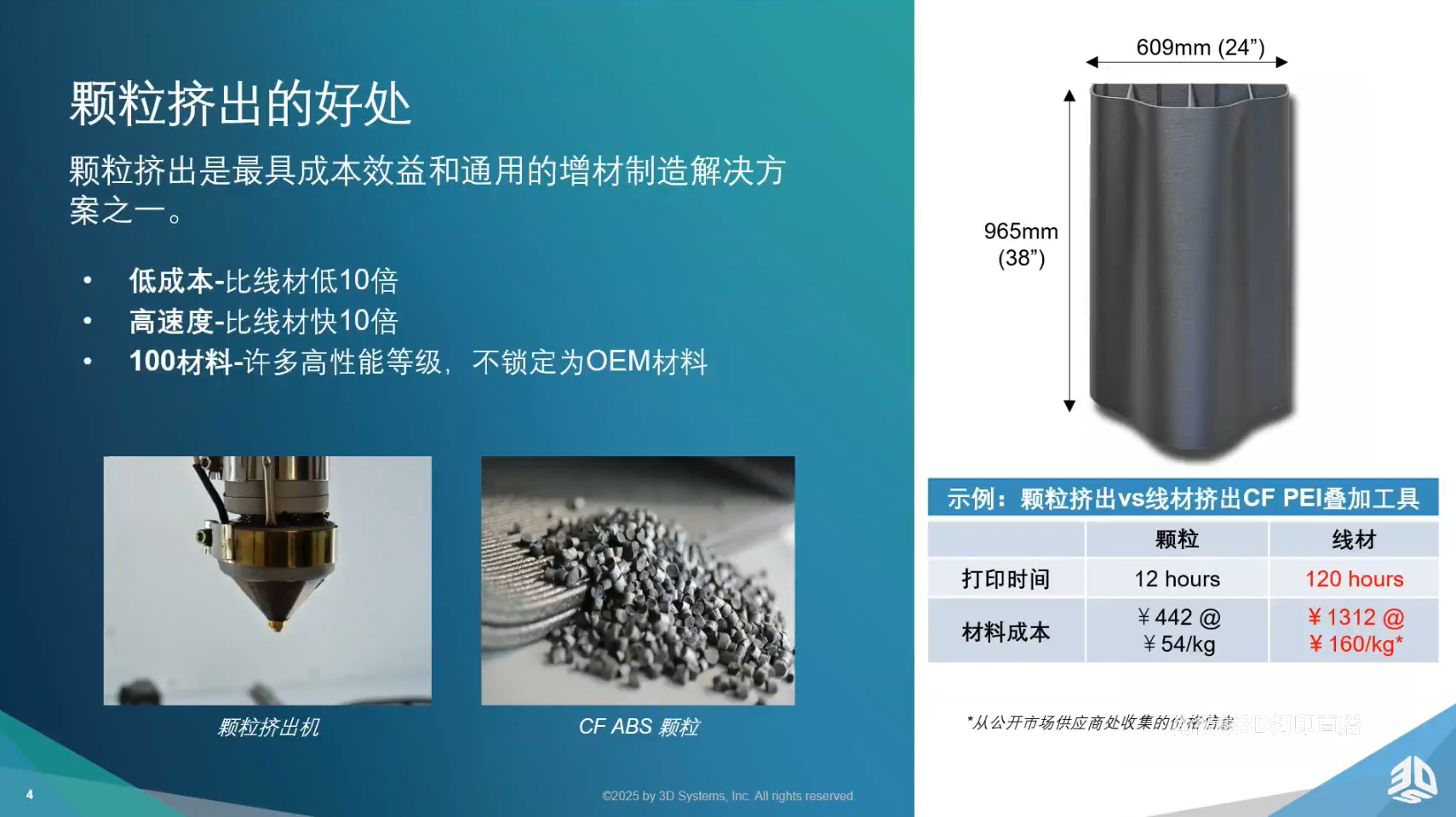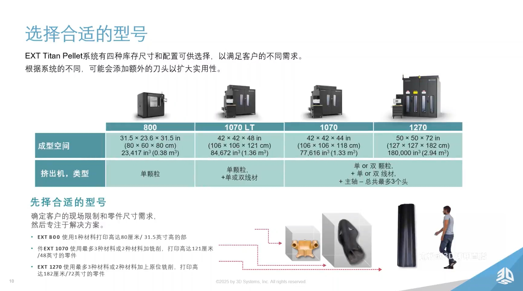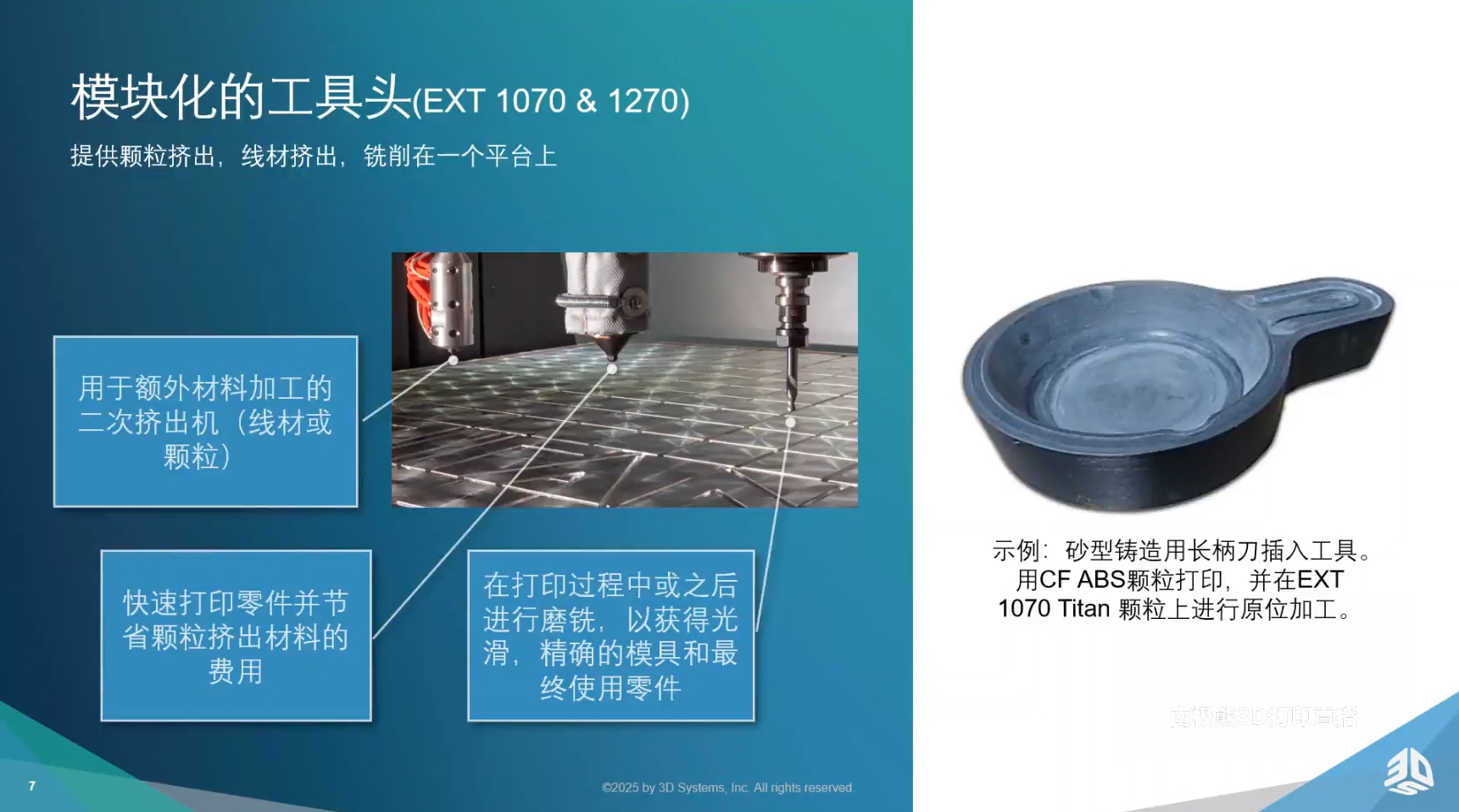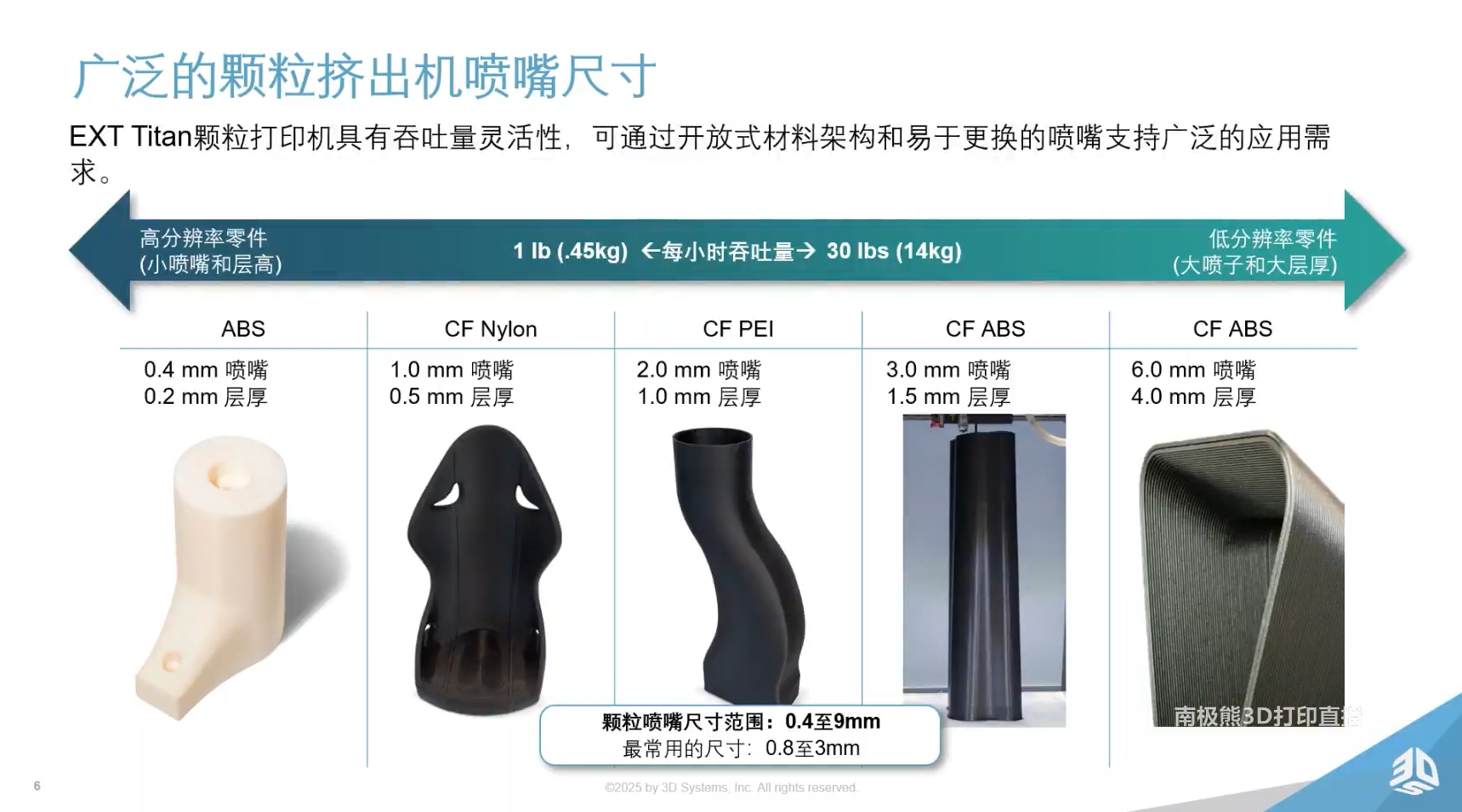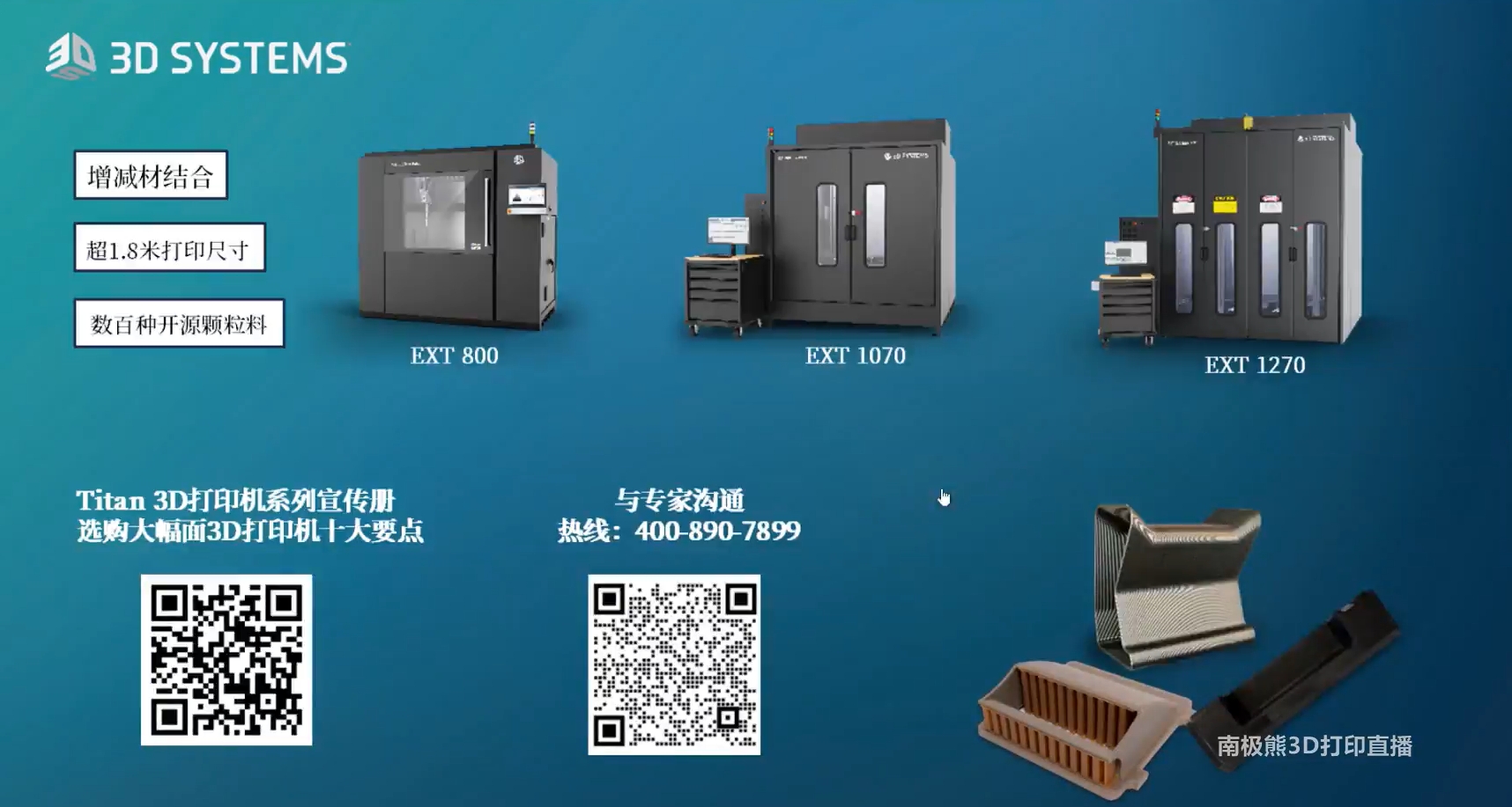 2025年6月12日,3D Systems 举办了一场线上研讨会,重点介绍其新推出的 Titan 颗粒料挤出 3D 打印机,凭借前沿技术和创新设计,Titan 吸引了来自全球制造业、科研机构等领域众多专业人士的关注。Titan系列目前包含三款产品:EXT 800 Titan Pellet、EXT 1070 Titan Pellet 和 EXT 1270 Titan Pellet。