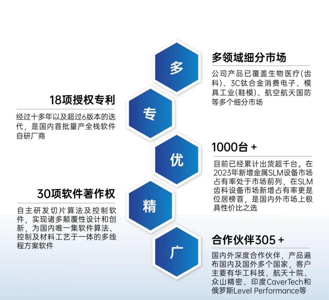 美光(江苏)三维科技有限公司是一家从事金属选择性激光熔融(SLM)设备的生产、制造及相关服务的高新技术企业。公司自主研发切片算法及控制软件,是国内唯一集软件算法、控制及材料工艺于一体的多线程方案软件,在国内3D打印软件领域“遥遥领先”,不仅实现零部件的国产化,并且大幅提升3D打印效率,大大降 低 设 备 成 本。