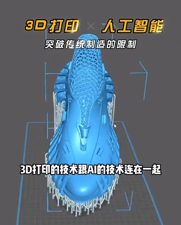 案例①:卡宾服饰艺术总监卡宾先生曾在短视频中展示他通过3D打印技术与AI设计的结合,成功设计并生产了完全个性化的鞋子。这款鞋子不仅符合卡宾先生的个人需求,还通过智能算法进行脚部数据分析,从而确保舒适度与功能性的完美结合。该项目展示了“所想即现”在个性化消费品领域的巨大潜力。消费者可以在线提交设计,3D打印工厂在全球范围内迅速响应并完成定制生产。这种灵活生产模式不仅缩短了产品从设计到生产的周期,还显著降低了成本,为个性化大规模定制开辟了新的路径。