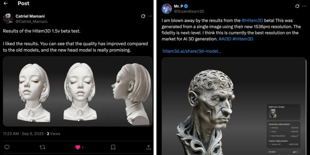 1.5发布后,很多海外用户纷纷分享了自己用Hitem3D生成的模型效果。一位美国独立游戏开发者展示了用 Hitem3D 生成的角色模型,“细节程度接近可以直接导入引擎,省去了大量前期建模时间”;另一位手办博主则用喜欢的角色图片生成模型,惊叹“连衣服质感都被还原出来”。这种跨地域的口碑效应,为 Hitem3D 打开了全球市场的想象空间。
