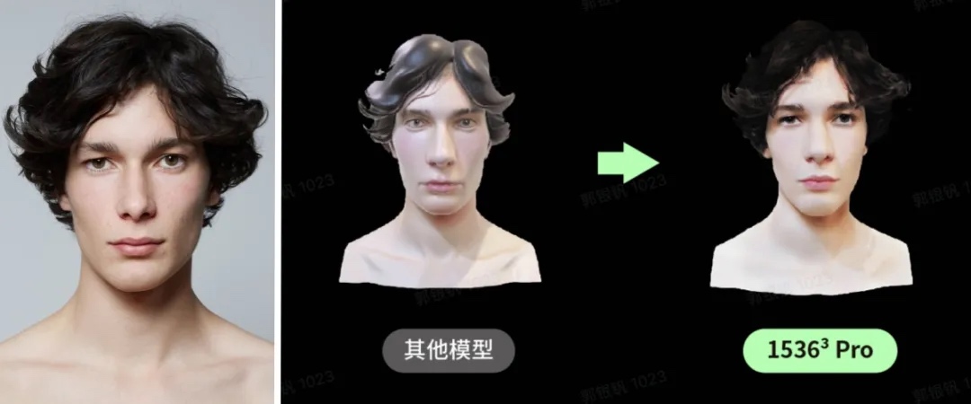 v1.5本次还专门针对半身照、大头照等输入场景进行优化,能够更准确地还原人物五官与面部细节。我们团队跑了几遍,效果确实很惊艳,对人物五官比例、五官位置还原的都非常到位。
