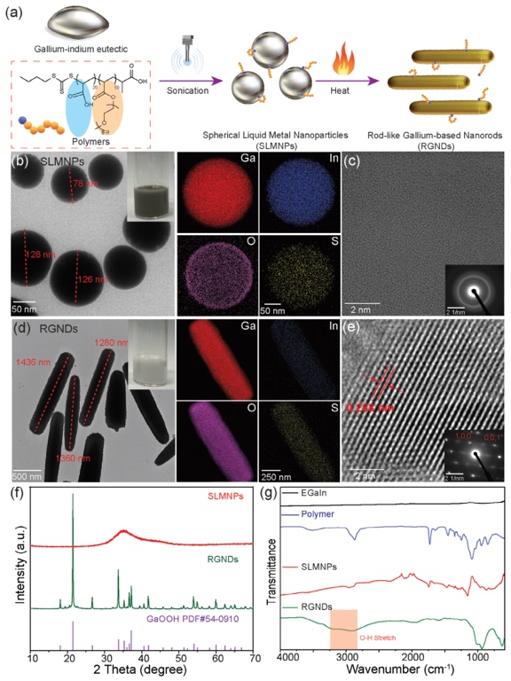 (1)受到可变形液态金属纳米颗粒(LMNPs)的启发,通过将不同形状的镓基纳米颗粒(GNPs)整合到3D打印聚合物中,开发了一个具有可调机械性能和可变形性的功能材料工具包。
