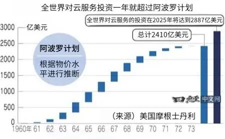 据美国摩根士丹利(Morgan Stanley)预测,到2025年,全球用于AI学习等的云计算设备投资额将达到2887亿美元,这一金额将超过曾把人类送上月球的美国阿波罗计划的累计投资额。