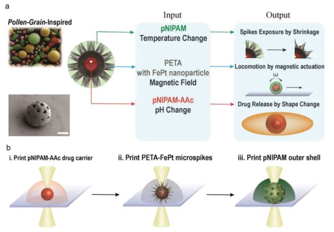 MNTech微纳导航 l 多功能水凝胶微型机器人:基于花粉颗粒的3D打印技术在靶向药物输送中的应用