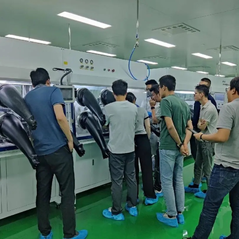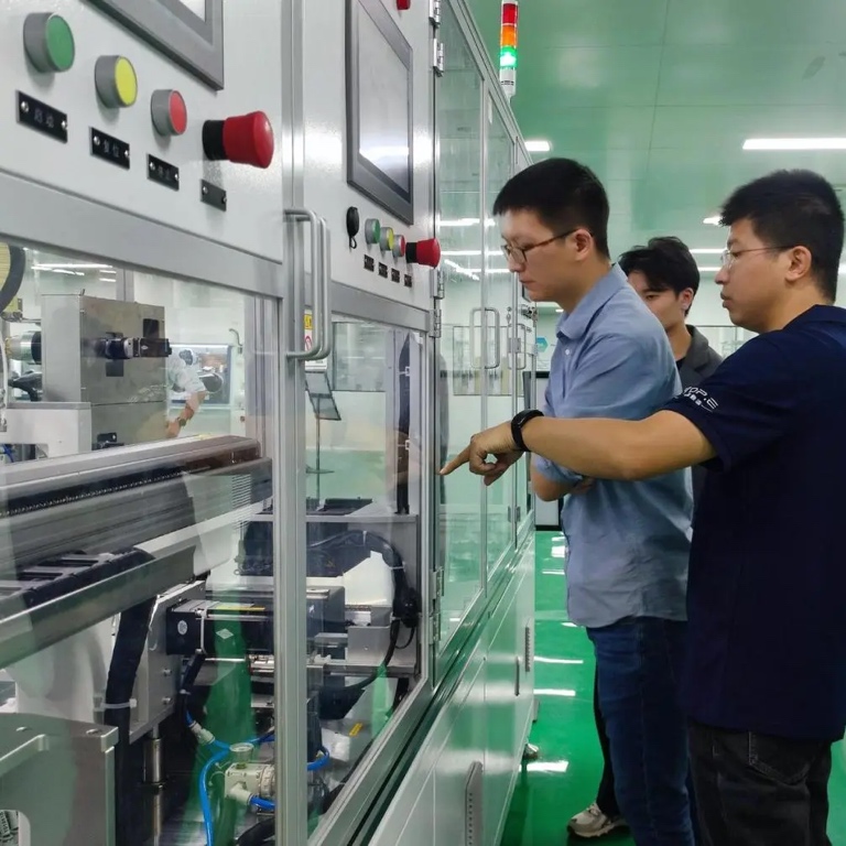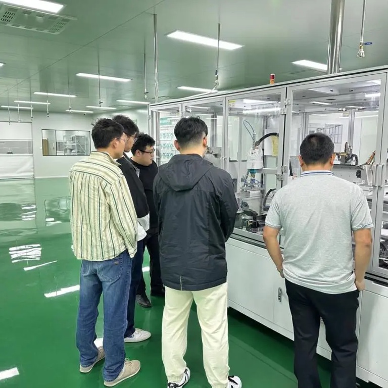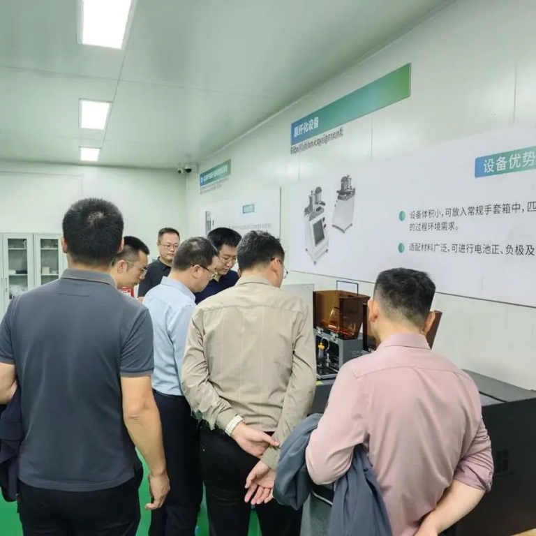 开放期间,嘉宾们参观了工程技术中心的各个区域。在生产车间,嘉宾们近距离观看了全固态电池复合极片高效制造平台和锂金属负极制片装备,它们有效实现了高精度正、负极双面电解质复合极片打印制备及智能烘干过程,自动完成了复合极片分隔收集,实现了锂带定长裁切,铜带定长极耳裁切及(锂极片+铜极耳)压合制成负极片工艺的流程,这让嘉宾们对锂金属全固态电池的制造过程有了清晰的认识。