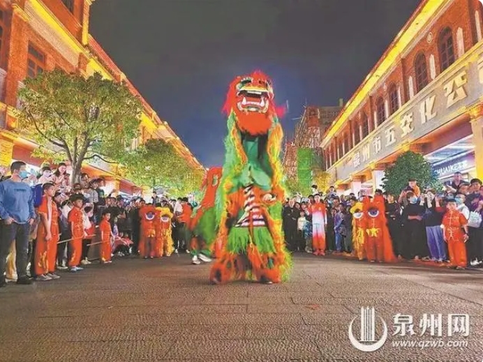 “‘刣狮’是泉州最具有特色的南少林武术拳种之一,既是民间舞蹈,也是武艺项目。”泉州刣狮非遗传承人、霞鹰武术馆常务副馆长纪彬荧介绍,1994年,泉州霞鹰武术馆成立,招收社区青少年为学员,学习五祖拳,并复练“霞洲青狮阵”。如今,霞鹰武术馆被授予“泉州刣狮传习所”,列入闽南文化生态保护区鲤城区展示点。