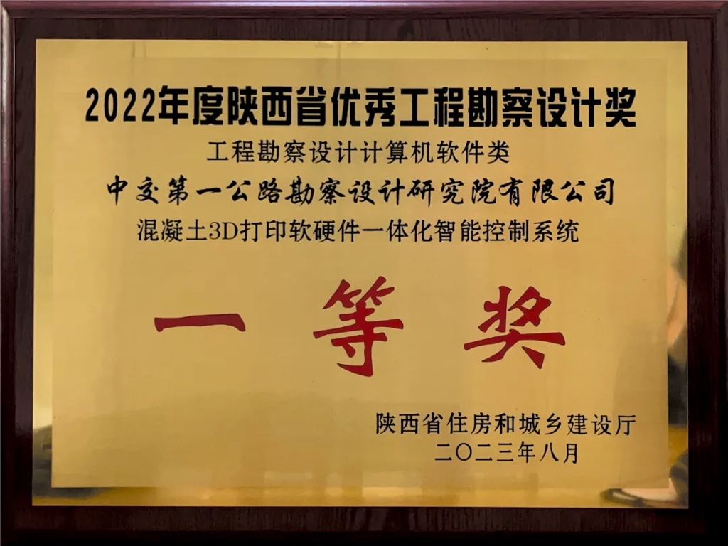 混凝土3D打印软硬件一体化智能控制系统,极大提高了混凝土3D打印项目生产与项目管理效率,目前操作人员已从4人减少至1人,充分降低了工序复杂度,关键设备数控化率达到100%。智能控制系统的实施监测模块有效降低了作业安全风险,各设备联动控制显著提高了建造效率,同时提高了产品的打印质量,质量损失率下降约20%。整个系统的响应时间均在100ms以内,确保了混凝土3D打印生产流程的高速运转。目前,该系统软件取得软件著作权4项,获2022年陕西省优秀工程勘察设计一等奖(计算机软件类),被评为“国际领先”水平,引领行业前沿。