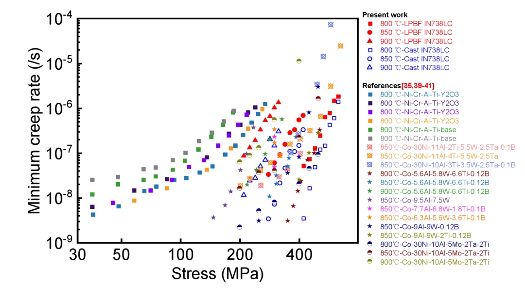 激光增材制造释放了结构设计约束和跨尺度组织构筑性,为突破当前高温结构材料的制造极限提供了创新方案,有望满足航空发动机、燃气轮机等重大装备对极端高温性能的迫切需求。蠕变性能作为衡量高温环境下构件服役性能与可靠度的关键指标,其重要性不言而喻。因此,加速构建激光增材制造合金蠕变性能数据库,并发展先进的蠕变行为预测技术,对于推动增材制造技术在装备制造领域的应用具有重要意义。