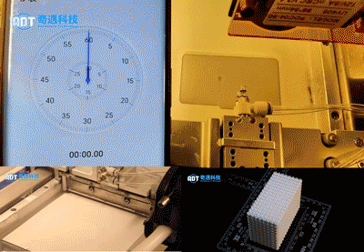 为使更多领域的研究人员加入到陶瓷3D打印的探索“旅程”,朱朋飞博士团队还进一步推出了超高速桌面级陶瓷3D打印机:ADT-3D-ZM-Ceramic-96-50。该3D打印机采用正置下沉的成型方式和蠕动过滤供料系统,能够有效提高打印成功率,可实现700层/小时的超快速打印速度,且设备自带材料工艺参数包,可打印材料多,一机可满足多种陶瓷材料的探索,能够真正实现“一键打印”。