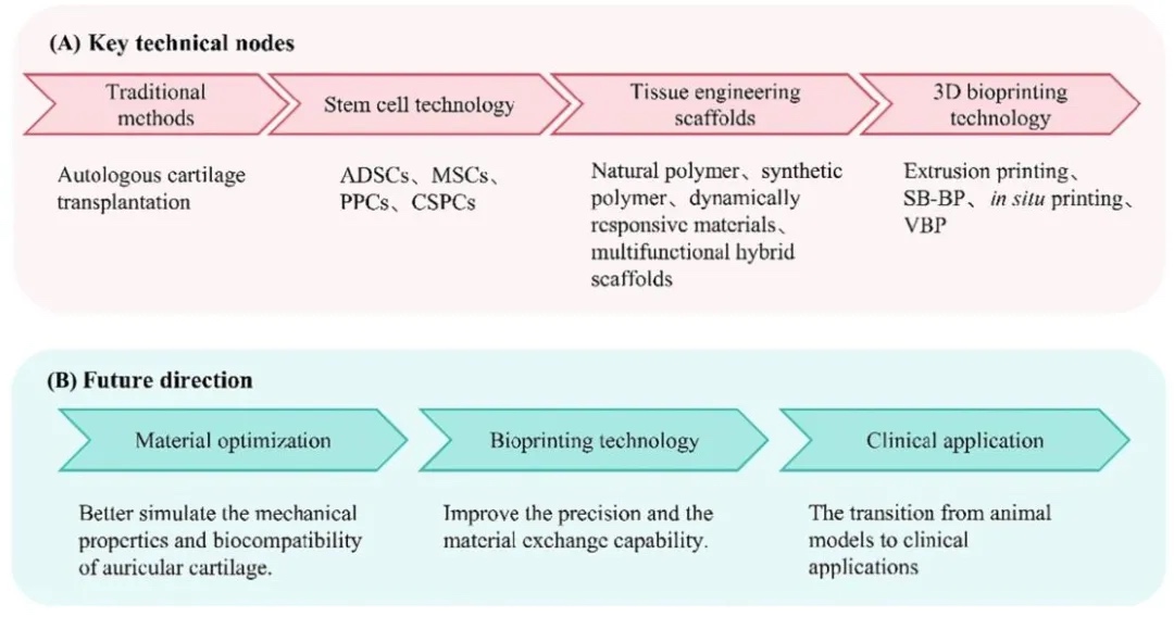 4. 未来研究方向:优化材料力学性能,改进生物打印精度,突破大动物模型与临床转化的物种差异。