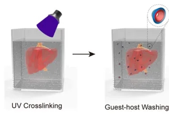 打印完成后,使用紫外线照射固定打印结构。将打印结构转移到含有α-CD(一种有效的去除剂)的溶液中,以去除OPEN支撑介质。