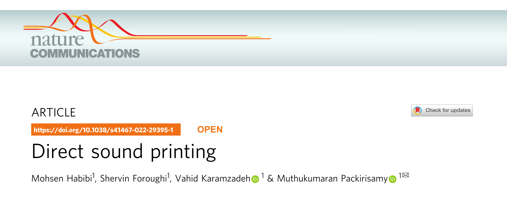 在他 2022 年发表在《自然》杂志上题为“Directsound printing”的论文中,打印的聚合物物体包括枫叶、蜂窝和齿轮等形状,而哈比比则使用组织模型和真实的猪皮、脂肪和肌肉成功打印了耳朵和鼻子的形状。哈比比和他的同事目前正在完成两篇新论文,通过重新设计他的第一篇作品的打印机制来打印微流体设备等精确物体,探索打印分辨率和准确度速度。