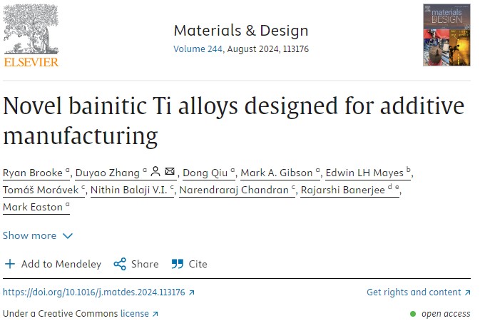 相关研究以题为“Novel bainitic Ti alloys designedfor additive manufacturing”论文发表于《材料与设计》期刊上。