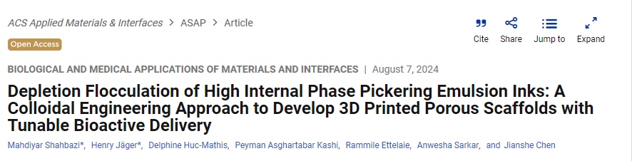 在此,奥地利维也纳自然资源与生命科学大学Mahdiyar Shahbazi、Henry Jäger提出了O/W Pickering高内相乳剂(Pickering-HIPEs)作为打印油墨,并证明Pickering-HIPEs油墨中的耗竭絮凝作为一种简单的胶体工程方法,可定制适合药物传递的多孔3D结构。