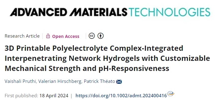 具有可定制机械强度和pH响应性的3D打印聚电解质复合物集成互穿网络水凝胶