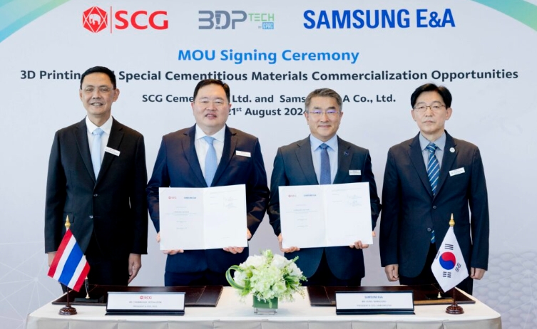 2024年9月5日,东南亚建筑材料公司暹罗水泥集团(SCG)旗下的混凝土产品和骨料有限公司(CPAC)与三星子公司工程服务提供商三星E&A(前身为三星工程)签署了一份谅解备忘录(MoU),旨在合作将三星E&A专有的水泥材料商业化应用于建筑3D打印领域(AC)。这一合作标志着两家公司在建筑材料和技术领域的进一步融合。