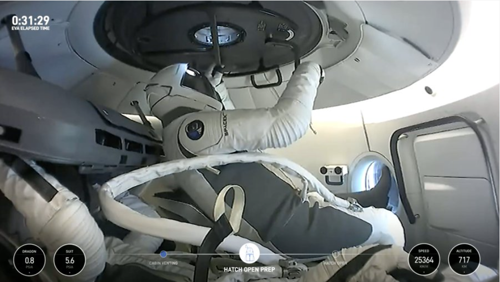 △ Jared Isaacman准备打开舱门进行首次私人太空行走。