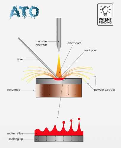 ATO 技术原理是将金属丝材或棒材在无氧室内的电等离子弧内熔化,利用超声波振动将熔融金属分解成微小液滴。这些液滴在惰性气体保护气氛下迅速凝固,形成金属粉末。凝固颗粒随保护气被输送到储存容器,沿途对工艺废物和烟雾进行过滤,并将其与粉末分离。