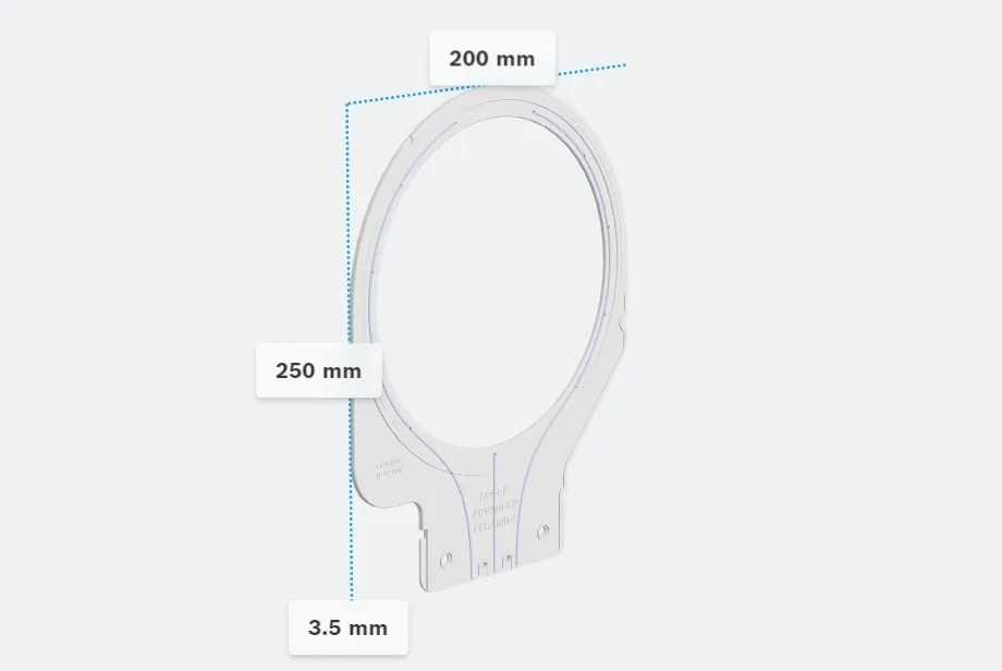 这款吸盘可以基于不同晶圆尺寸设计不同直径,内部复杂的气体腔道通过一体成型制造,满足使用过程中气密性,平面度,清洁度以及耐用性要求,这种大尺寸,复杂结构陶瓷打印产品充分展示了博世先进陶瓷在陶瓷增材制造领域的技术实力。产品采用99.8 % 氧化铝材质,重量为280克,尺寸[长*宽*高]:250x200x3.5 mm。