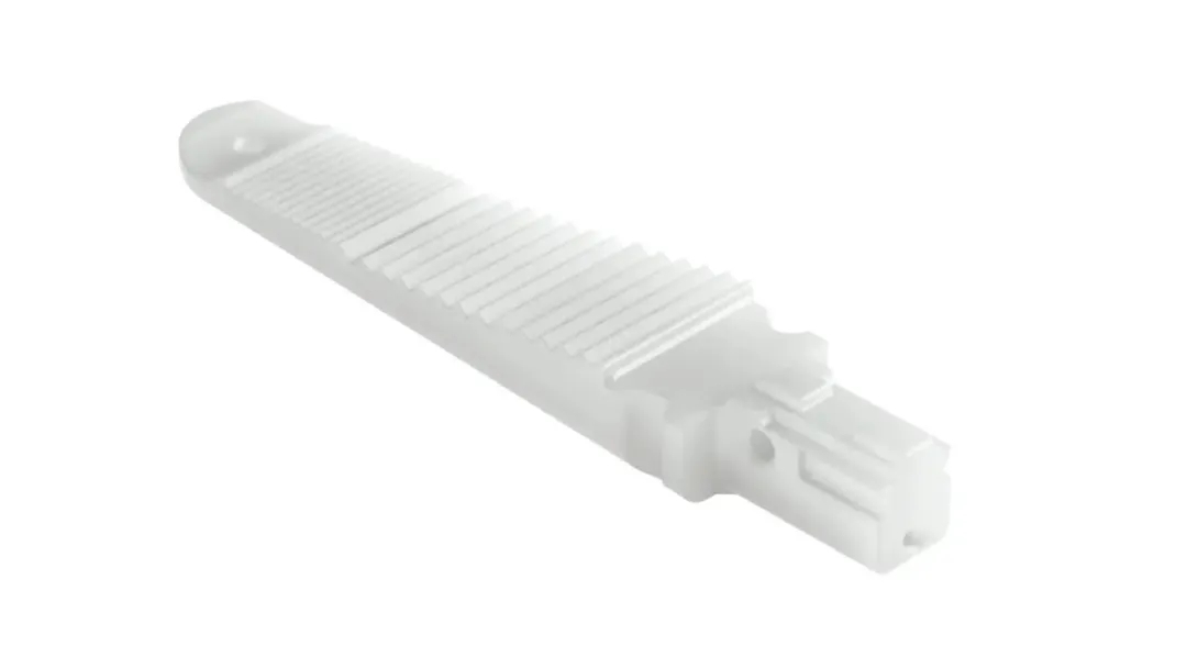 这是一款3D打印的陶瓷手术钳头,主要是用于电外科手术器械,在手术过程中实现夹取,电凝的功能。采用了氧化锆陶瓷材质,重量为0.57克,尺寸[长*宽*高]:19.5x4x2.5mm。陶瓷材料具备电绝缘和抗弯特性,保证了电外科手术过程中的安全性,博世先进陶瓷生产的陶瓷部件致密度高>6.1 g/cm3,结构精密,材料抗弯强度和抗断裂韧性可靠,具备生物相容性。