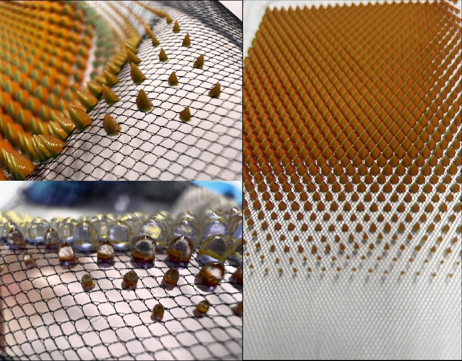△3D打印元素应用于网眼织物,凸显了3D打印在时尚领域的精确性和设计灵活性