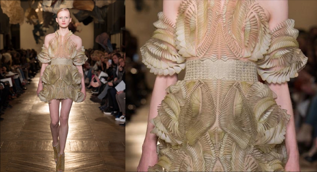 △Iris van Herpen2018年系列的3D打印连衣裙展示了3D打印在高端时尚领域的潜力