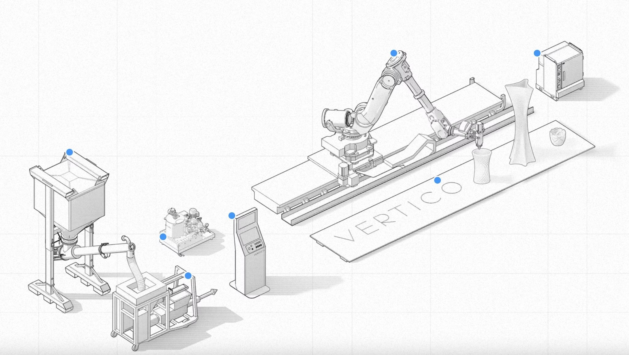 Vertico提供从设计到施工的完整混凝土3D打印解决方案,包括可定制的打印头配置,满足不同项目需求。客户可以根据具体需求选择是否配备加速混合功能,确保最佳性能。此外,该公司还提供详细的报价方案,确保客户获得高性价比的解决方案。
