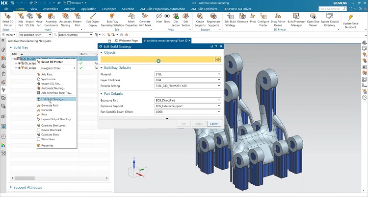 △NX AM软件与EOS的作业和流程管理软件EOSPRINT 2的集成,使用户能够直接在NX中生成EOS构建文件,定义材料、曝光集和光束偏移值以及其它变量