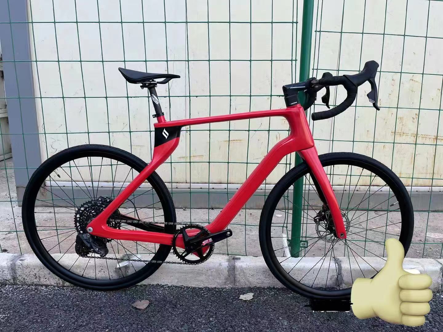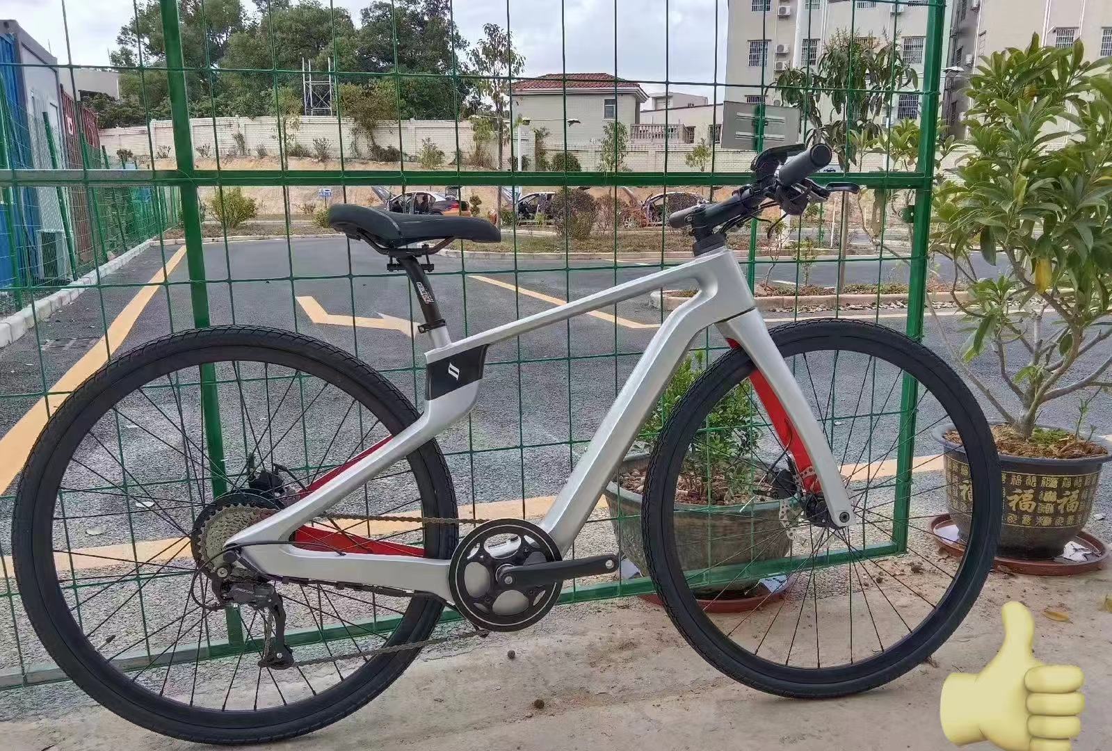 - 700C碳纤维平把助力公路车 ,助力骑行80公路左右, 3D打印一体碳纤维内走线车架 前叉 440mm架高