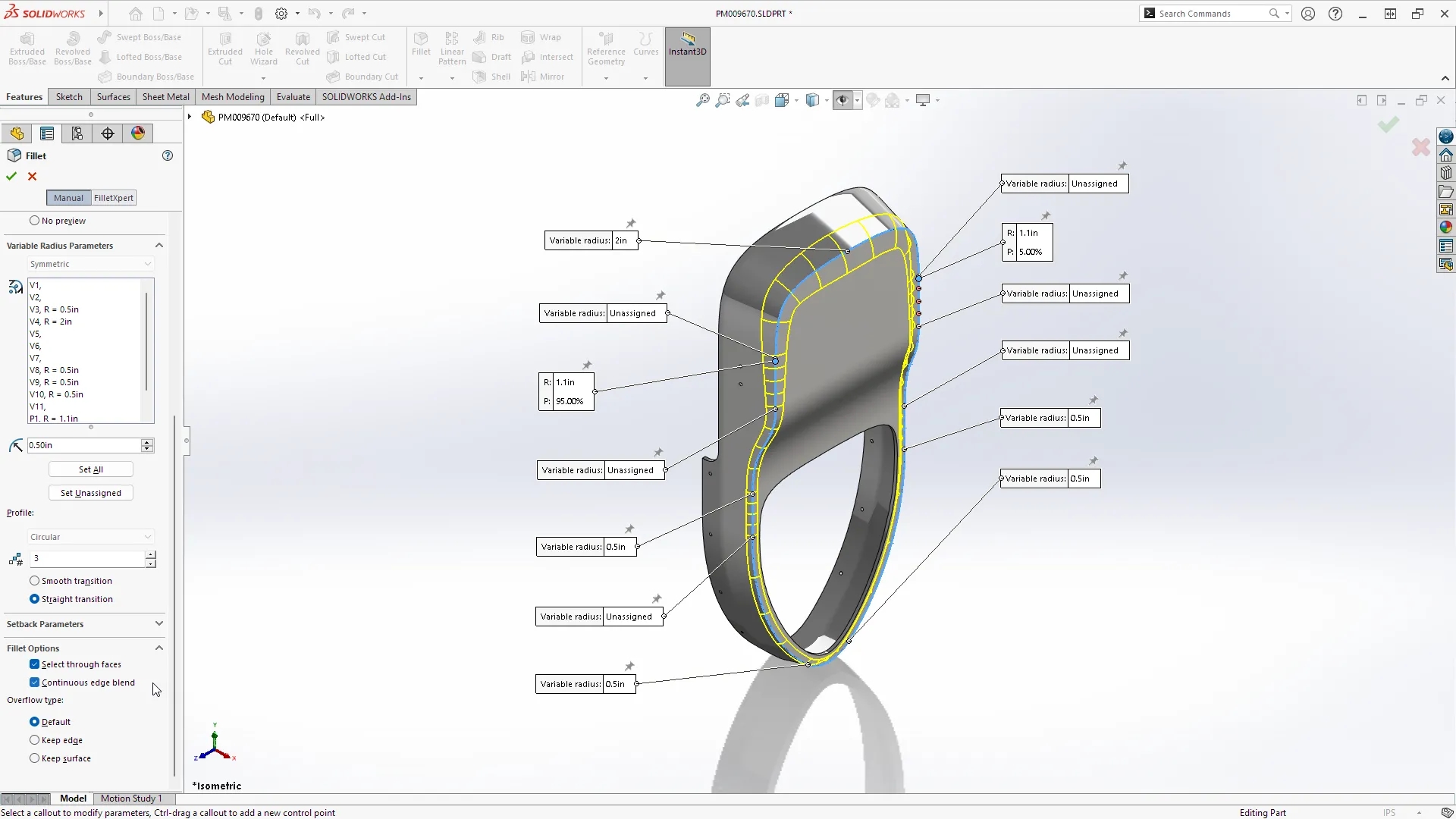 ●简化的零件设计,具有用于倒角的新选择加速器,并且能够创建更平滑的可变尺寸圆角,并可以选择连续混合圆角边缘。