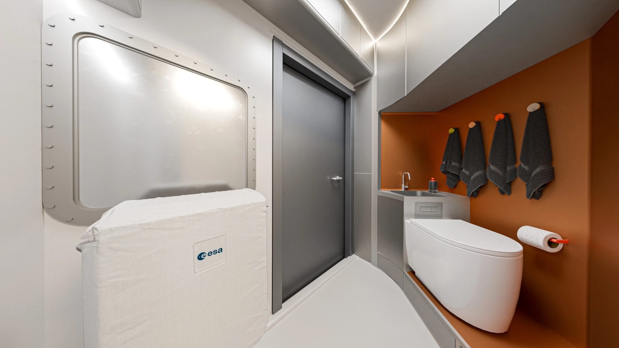 FLEXHab的气闸舱具有双重用途:它为栖息地提供了一个安全、密封的出入口,同时也是一个卫生区。气闸舱设计为一个“湿室”,包括可清洗的表面和宇航服端口,可高效管理舱外活动宇航服,利用3D打印组件,在高使用率区域实现耐用性和易于维护。