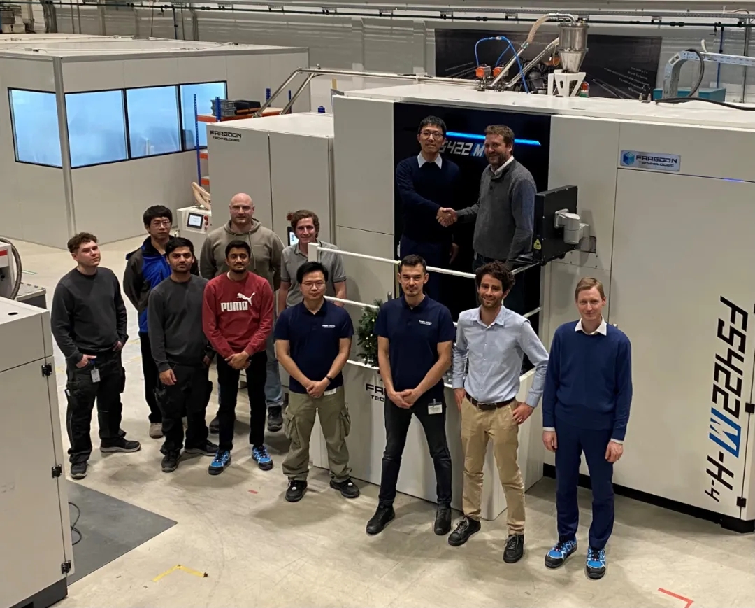 △2023年APWORKS和华曙团队在APWORKS安装的 FS422M-H设备前合影(图片来源:华曙欧洲公司)