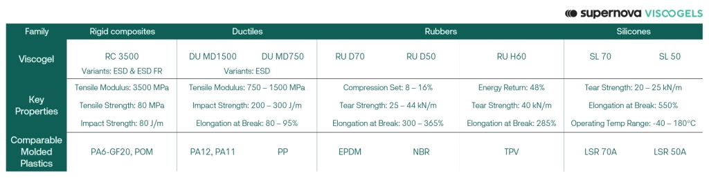 Supernova将Viscogels分为四个材料系列: