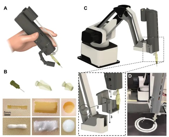 图3 手持式和自动化原位打印的演示