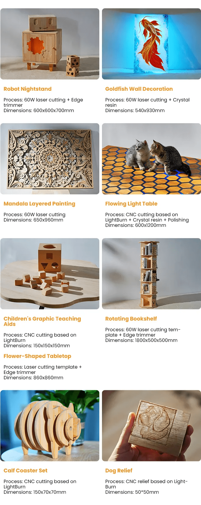 ●大幅面加工支持:可处理整张1220x2440mm木板,提高材料利用率,满足大规模生产需求。