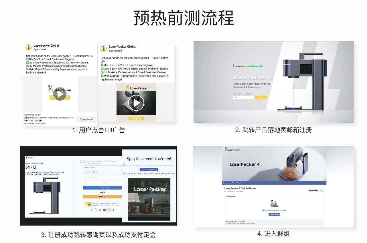 ●精准投放:深入分析用户画像,锁定创意设计师、小型企业主等细分人群,结合产品功能特点制定本地化广告策略。LaserPecker 4的广告内容重点突出DIY创意与商业价值,显著提升了用户转化率。